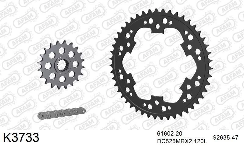 Complete DC AFAM kettingset bestaande uit een hoogwaardig voortandwiel, achtertandwiel en super sterke ketting. De combinatie van een DC ketting met AFAM tandwielen garandeert een lange levensduur en zorgeloos rijplezier.
