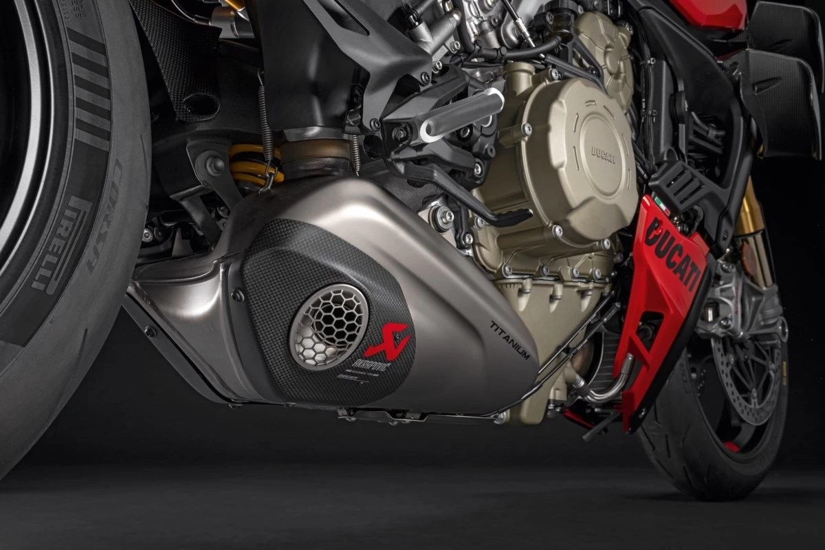 Het onmiskenbare Ducati-ontwerp wordt gecombineerd met het bekwame vakmanschap van Akrapovič om een exclusief accessoire met een sterk racekarakter te creëren. De body van titaniumlegering en de carbon eindkappen garanderen lichtheid en weerstand tegen hoge temperaturen, en dankzij het honingraatrooster bij het gasuitlaatgat geven ze de supersportmotoren van Borgo Panigale een nog agressievere uitstraling. Het paar goedgekeurde geluiddempers verbetert de vermogen-gewichtsverhouding van de motorfiets verder dankzij een besparing van 0,8 kg, voor ongekende prestaties, met inachtneming van de wettelijk opgelegde geluidsemissies. De stijl van dit accessoire, gemaakt door dezelfde ontwerpers van de onmiskenbare lijnen van de Panigale V4, past perfect bij het uiterlijk van de motor en versterkt de race-ziel. Een echte race-replica ook voor het typische geluid.