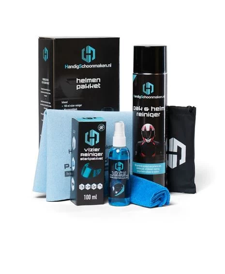 Na warme zweterige zomerdagen met je helm op kan het geen kwaad om de helm van binnen te reinigen. De haargel, make-up en huidvetten die in de binnenvoering gaan zitten zijn eenvoudig te verwijderen met deze set. Met de helm-reinigingsset zorg je dat dit in no time weer fris is. Het reinigen van de helm is fijn voor het comfort. Daarnaast is het reinigen van het vizier onmisbaar voor de veiligheid. De vizier-reinigingsset krijg je er daarom bij. Een schoon vizier voor prachtig zicht. Alles voor je helm in ÊÊn set.