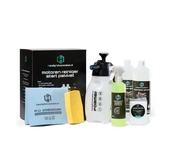 Het zit allemaal in één starterspakket. Geen gedoe meer om alle spullen bij elkaar te zoeken. Met deze motorreiniger-startset verwijder je al het vuil en vliegen van alle motoronderdelen. Door het gebruik van schuim maak je ook de lastige plekken makkelijk schoon. De hoge kwaliteit van de producten sluit krassen en beschadigingen uit. Als je deze set gebruikt, kost een wasbeurt maar €1,19. Door de simpele gebruiksaanwijzing die je bij de startset geleverd krijgt, ben je nog sneller klaar om weer de weg op te gaan!
