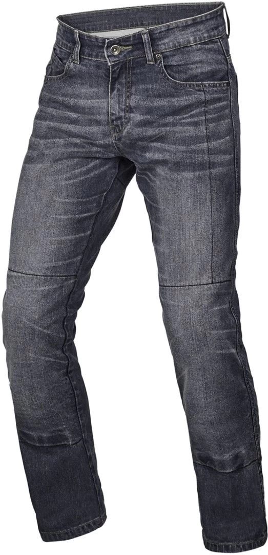 De Revelin heeft CE-gekeurde protectoren op de knieën die in hoogte verstelbaar zijn en de jeans is voorbereid voor protectoren op de heupen.