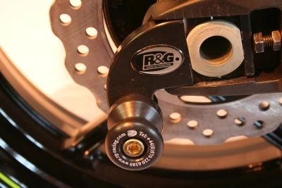 Wanneer er geen schroefdraad in de achterbrug is om een bobbin te monteren kan de R&G “Offset Cotton Reels” gebruikt worden. Zo kan er via de kettingspanner/achteras toch een bobbin op de motor gemonteerd worden en kan de motor dus met een paddockstand veilig en stevig gestald worden. Ook beschermen de bobbins de achterbrug bij een val.