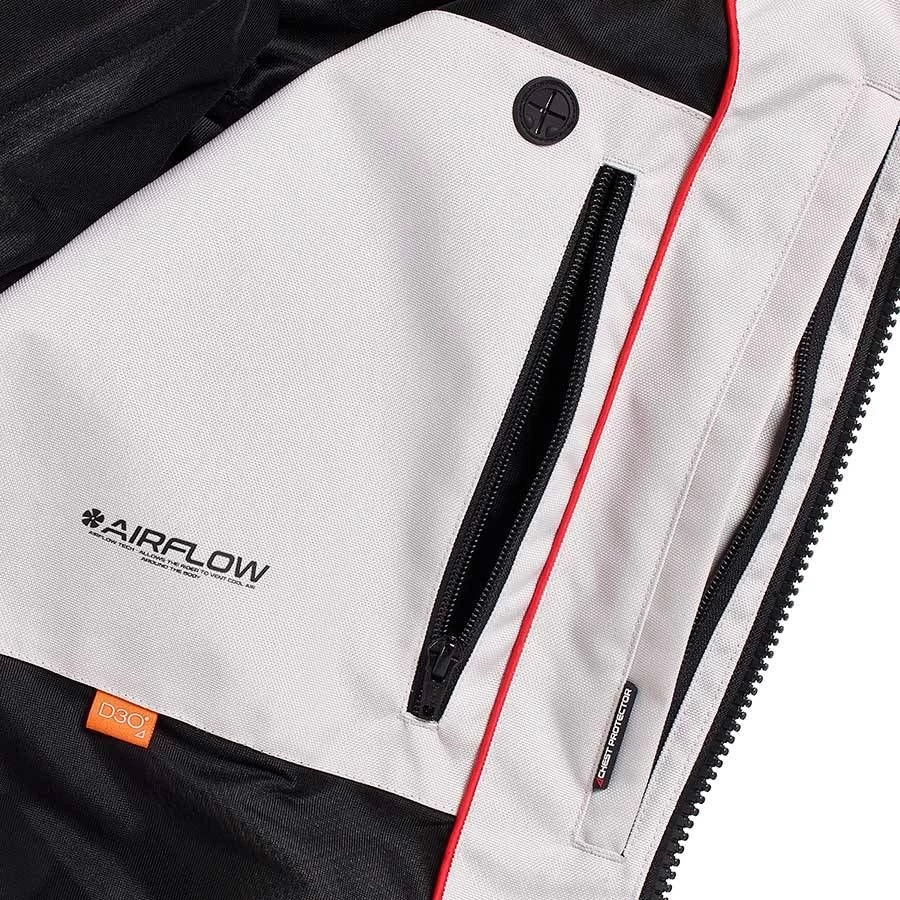 De jas is geconstrueerd met een AirFlow mesh-constructie, waardoor lucht vrij door de jas kan stromen en zorgt voor uitstekende ventilatie en verkoeling tijdens het rijden.