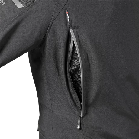 Een stormmanchet bij de mouwen en luchtinlaten die de luchtstroom door het lichaam leiden, dragen bij aan het klimaatcomfort.